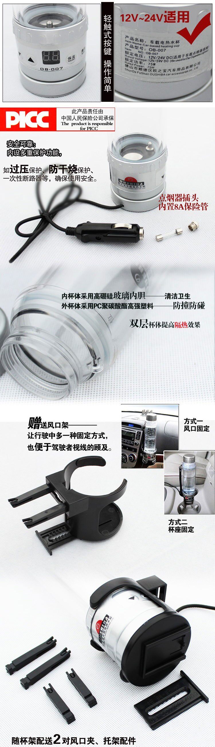 OU Zhibao Cotor Electric Cup 12V24V Автомобильная барбобовая нагреватель