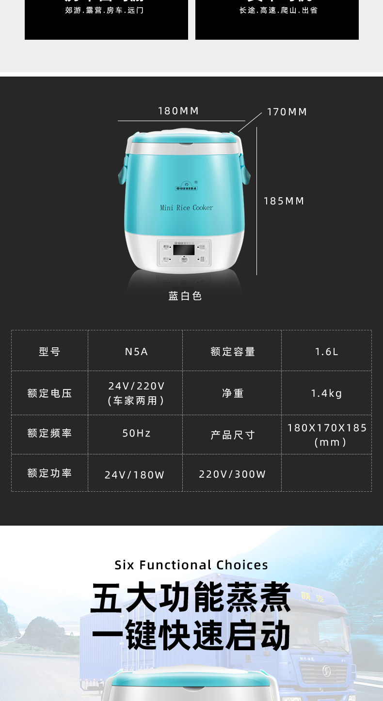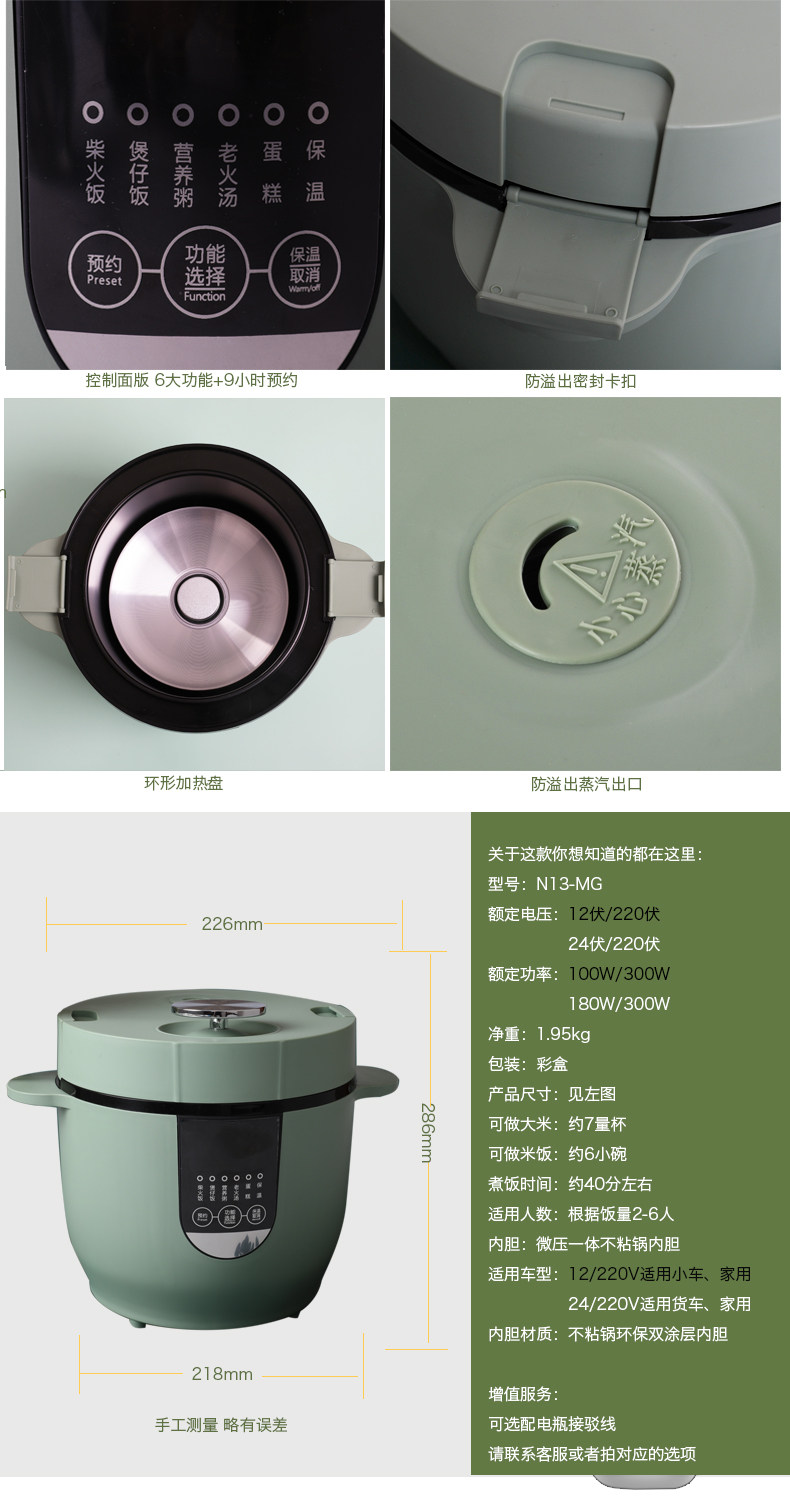 Портативная рисоварка, 12v, 24v, 220v