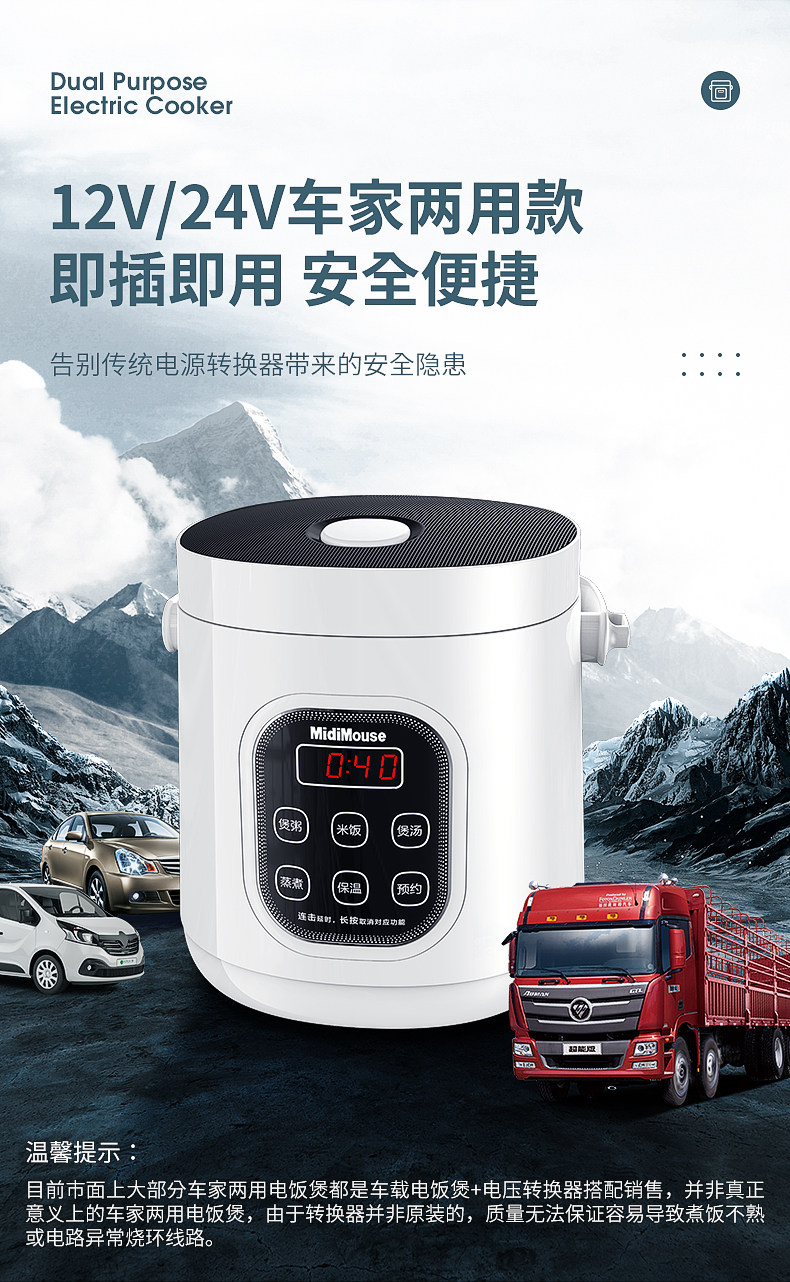 Грузовик, автомобиль электрическая рисоварка, рисоварка 12V24V автомобиль Домашний автомобиль Двойной много -используемый многофункциональный самостоятельный