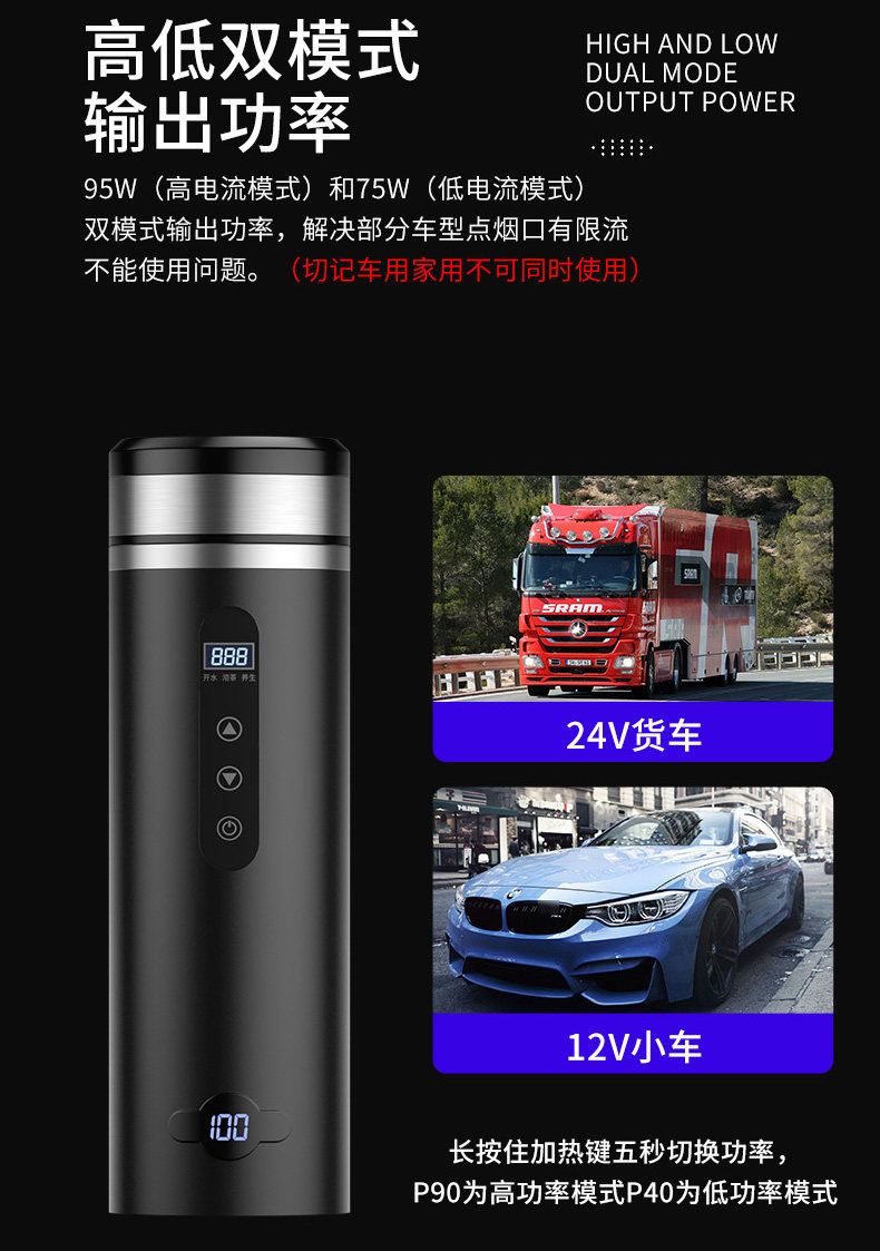 Транспортный кипящий чашка 12V24V Авто электрическая чашка нагревание водяной чашки для водонагревателя Автомобильный автомобиль Дом двойной чайник артефакт