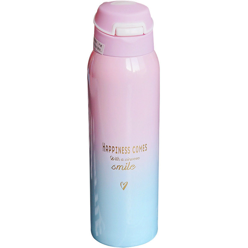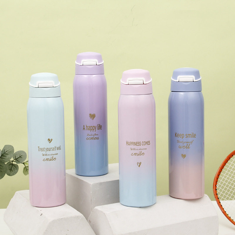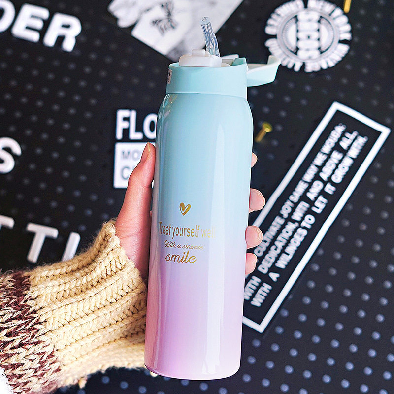 Вакуумный стакан, детская милая портативная трубочка подходит для мужчин и женщин для школьников со стаканом, градиент, простой и элегантный дизайн