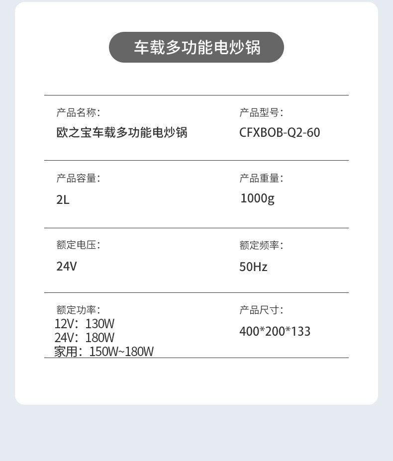 OU Zhibao CAR Loaded Electric Wok 24V.