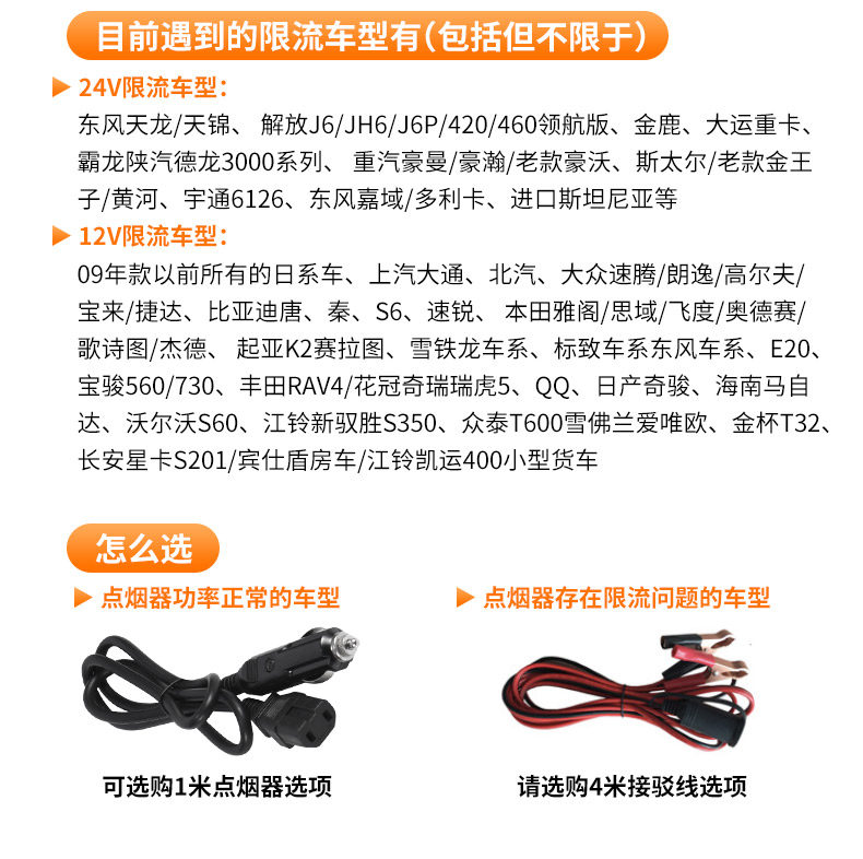 - [Выберите это в током, ограничивающем автомобиль] 12 В, автомобиль + сигаретный зажиганок + 5 -метровый кабель аккумулятора