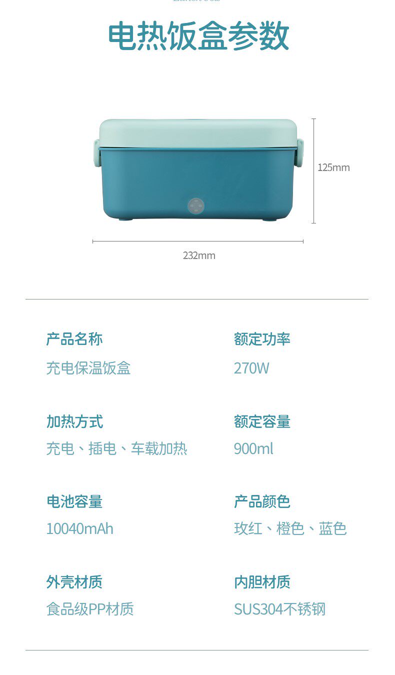 Зарядка не подключает нагревание ланч -коробки из нержавеющей стали.