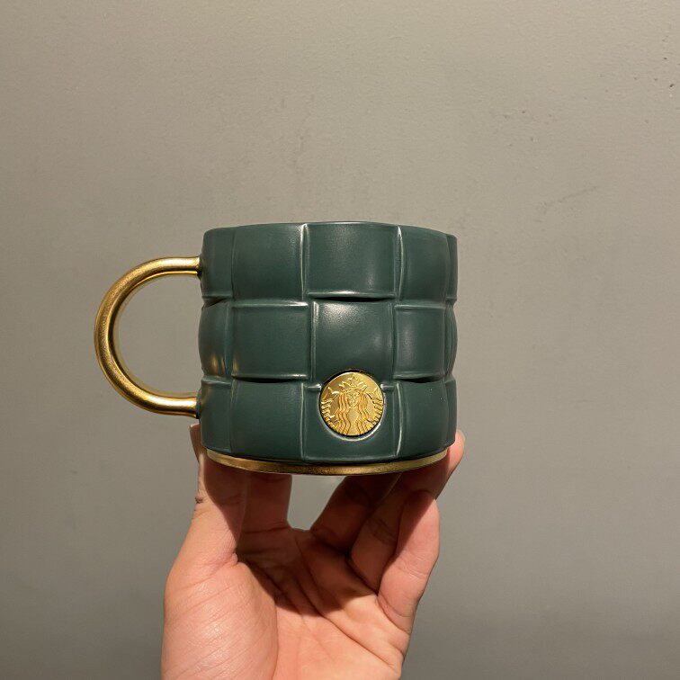 - 375 мл Зеленый лапер проверил двойную керамику Ceramics Cup Cup
