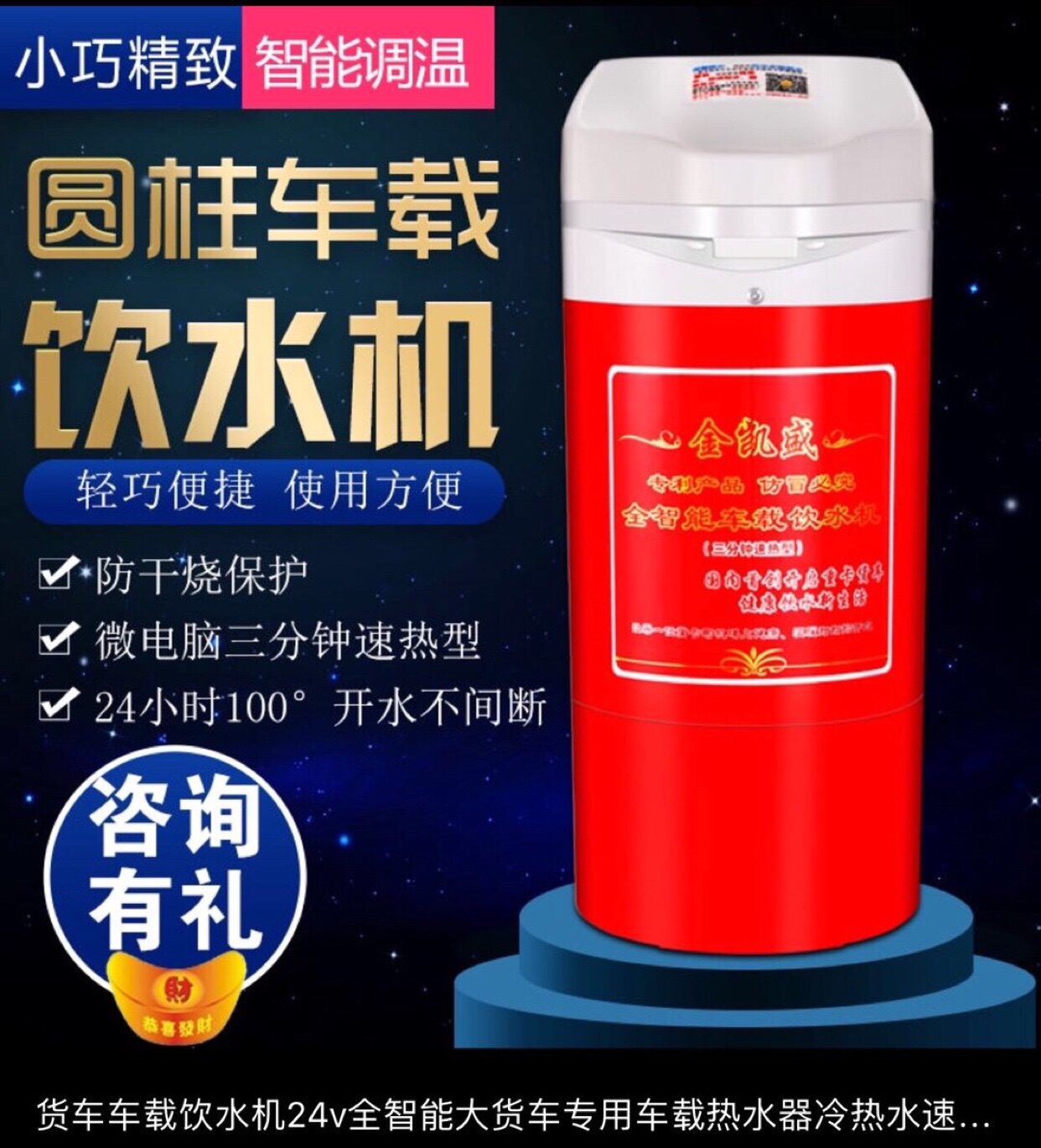 24 В автомобиль питьевой машины Цилиндрическая дозатор воды Джин Кайшенс -диспенсер для грузовика.