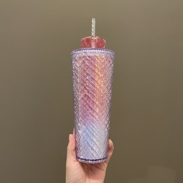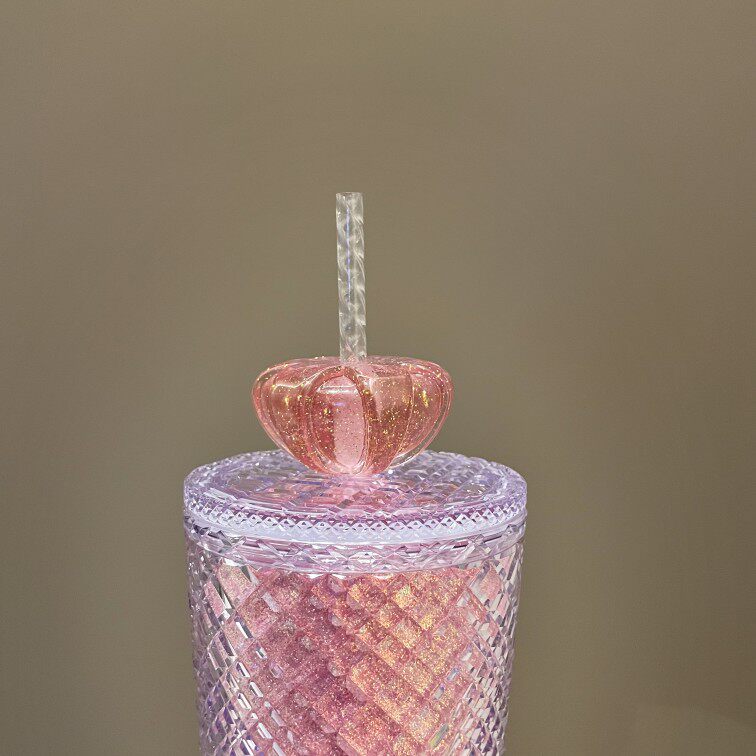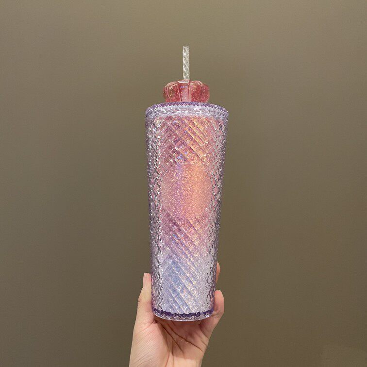 Starbucks, розовая вместительная и большая пластиковая портативная трубочка на день Святого Валентина со стаканом, 2022, градиент