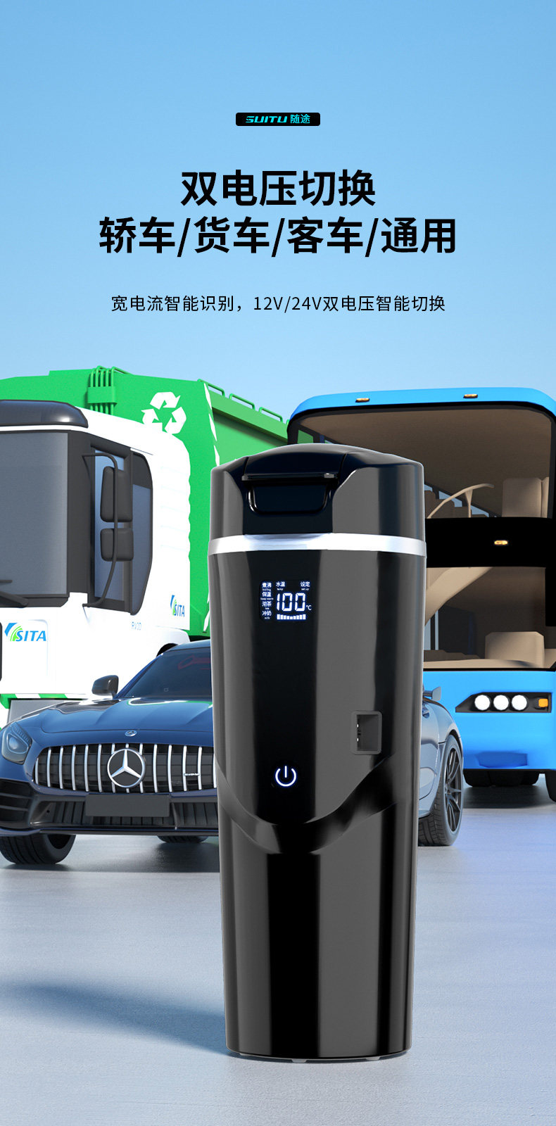 Автомобиль Barbon Car 12V Smart Voice Electric Hot Water Cup 24 В.