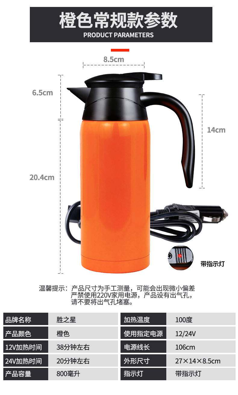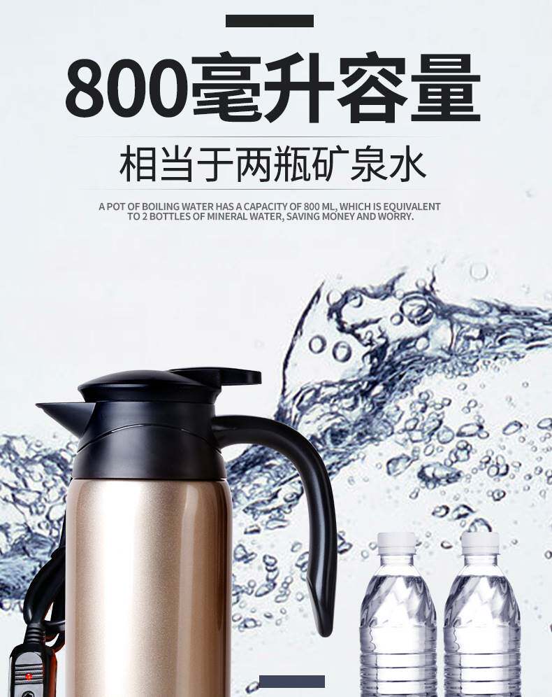 Вместительный и большой портативный универсальный чайник, термос, 800 мл, 12v, 24v
