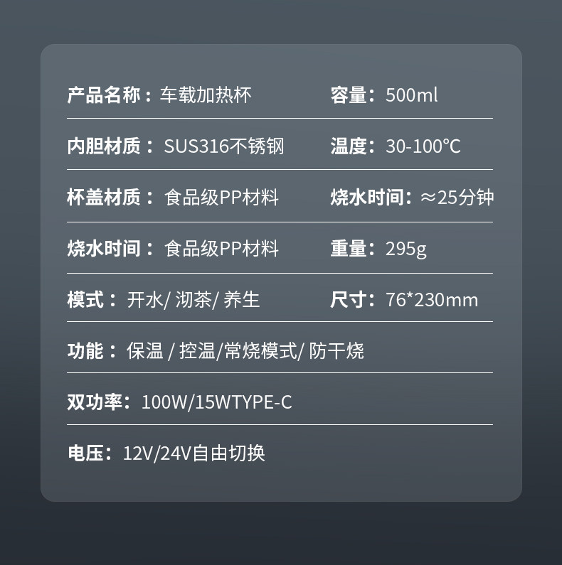 Автомобильная вода кипящая чашка 12V24V Универсальная вода кипящая чайник 2024 Новый USB -электрический нагреватель изоляция Интегрированный водонагреватель