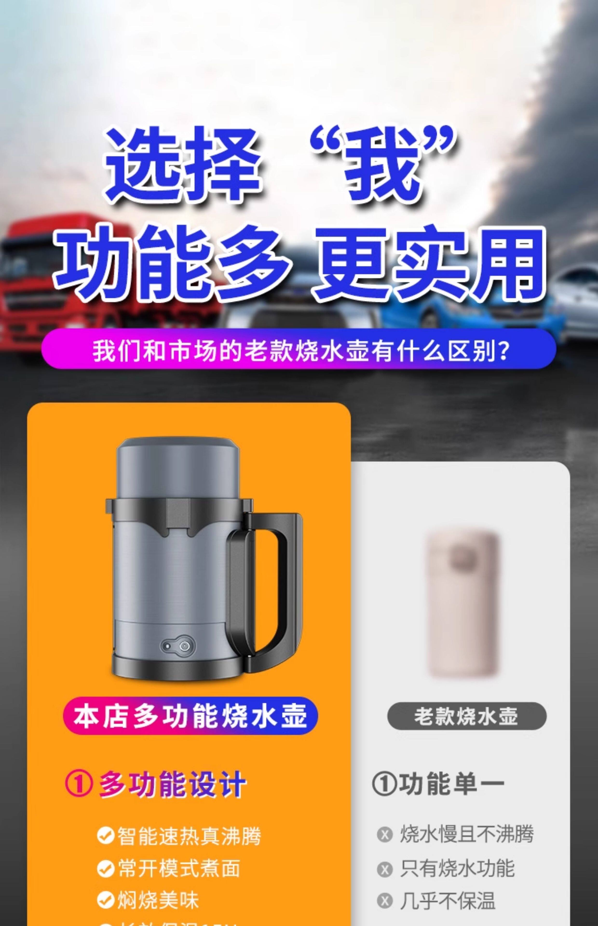 Чайник, многофункциональный портативный термос, объем 12, 12v, 24v, широкое горлышко