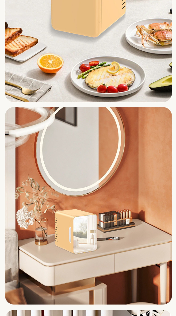 Мини-автомобиль с косметическим зеркалом, портативный косметический холодильник, автомобильный общежитие, автомобиль для охлаждения и свежести, 4 л