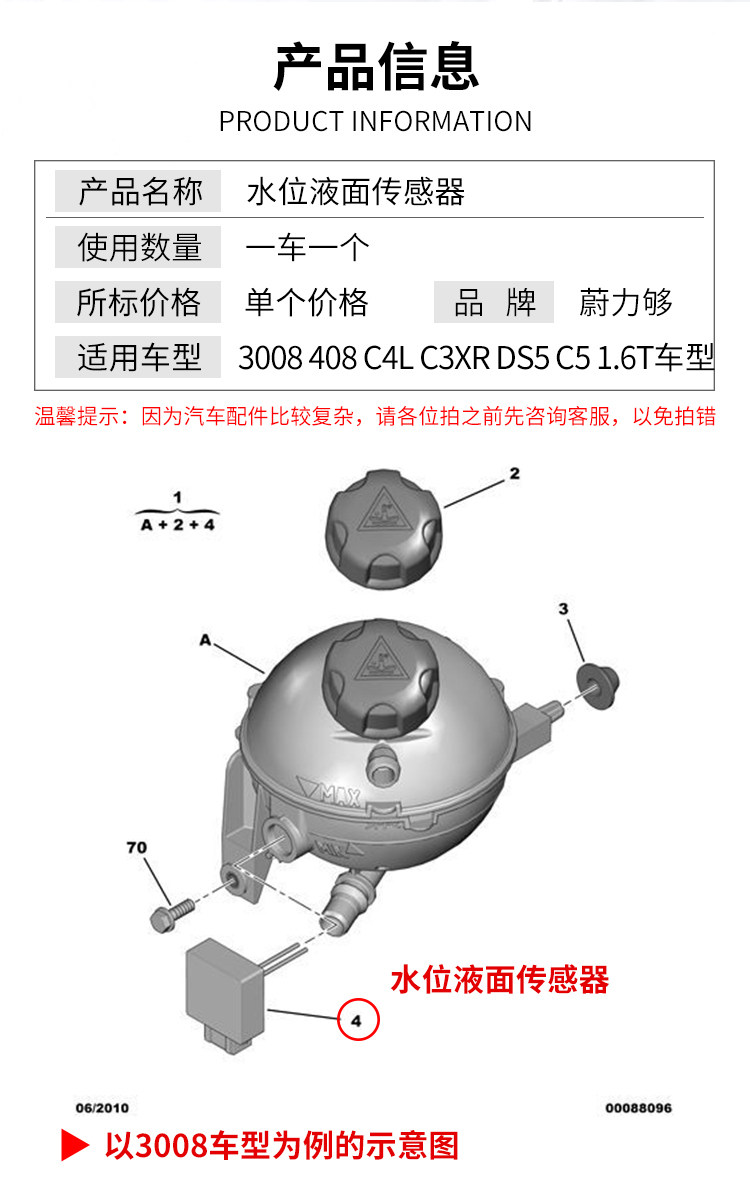 Адаптированный Peugeot 3008 408 C4L DS5 Citroen Line Sensor 1.6t Vice Kettle Water Shine