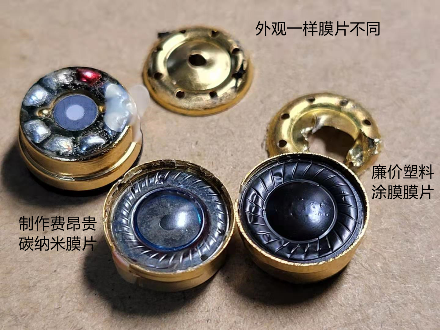 В золотых пористых диафрагмах появились чисто прозрачные диафрагмы и чисто черные диафрагмы.Прозрачные — это пластиковые диафрагмы, а чисто черные — элементы с покрытием, которые не являются настоящими углеродными наночастицами.Каждый должен внимательно следить за покупками!! !Не ведитесь на дешевые цены. Себестоимость производства единичных диафрагм сильно различается!! !Звук, производимый настоящим углеродным нано, лучший! ! Некоторые покупатели покупают более дешевые товары после покупки здесь. Хоть внешний вид идентичен, но звук после установки гораздо хуже моего. Высоким частотам не хватает яркости, и инструмент недостаточно яркий. Когда разберешь и сравнишь, то видно, что диафрагма другая!Приглашаем всех сравнить!!!Покупайте оригинальные устройства с уверенностью