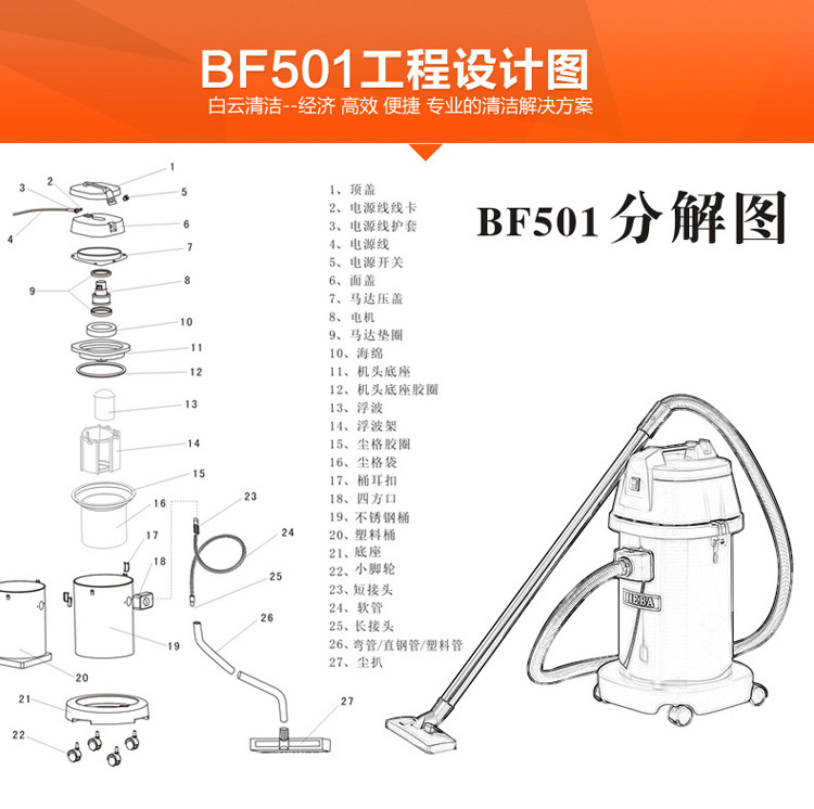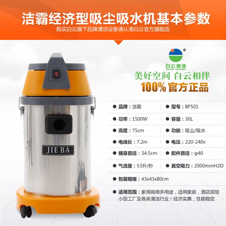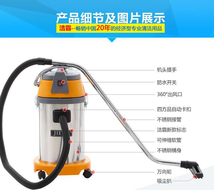 Вакуумный очиститель/jieba bf501 вакуумный поглотитель воды/30-литровый ствол из нержавеющей стали Влажный и влажный двойной вакуум без вакуумной очистки.