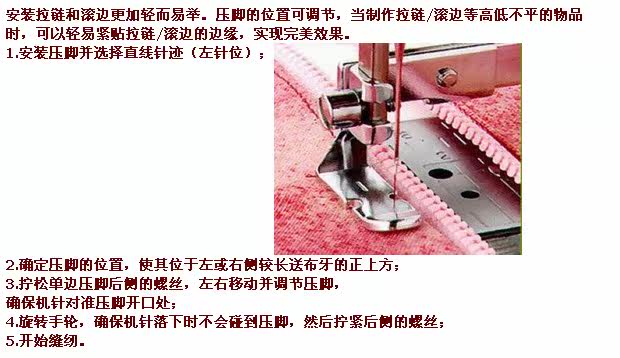 1. Чтобы шить левую сторону молнии, положите на молнию на молнии на левую сторону игла машины