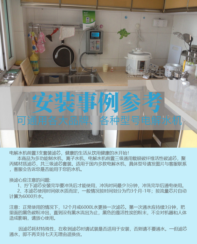 Этот продукт представляет собой многофункциональный водный аппарат, ионная водная машина, электролитическая водяная машина передняя часть трехуровневого общегоУглеродный волокно активированный элемент углеродного фильтра, Элемент фильтра с полипропиленовым материалом, в общей сложности три костюма фильтрации.Он подходит для различных домашних электролитических водопроводных машин. Пожалуйста, свяжитесь с обслуживанием клиентов для конкретных моделей. Обслуживание клиентов сообщит вам, можете ли вы использовать его для своего водоснабжения.