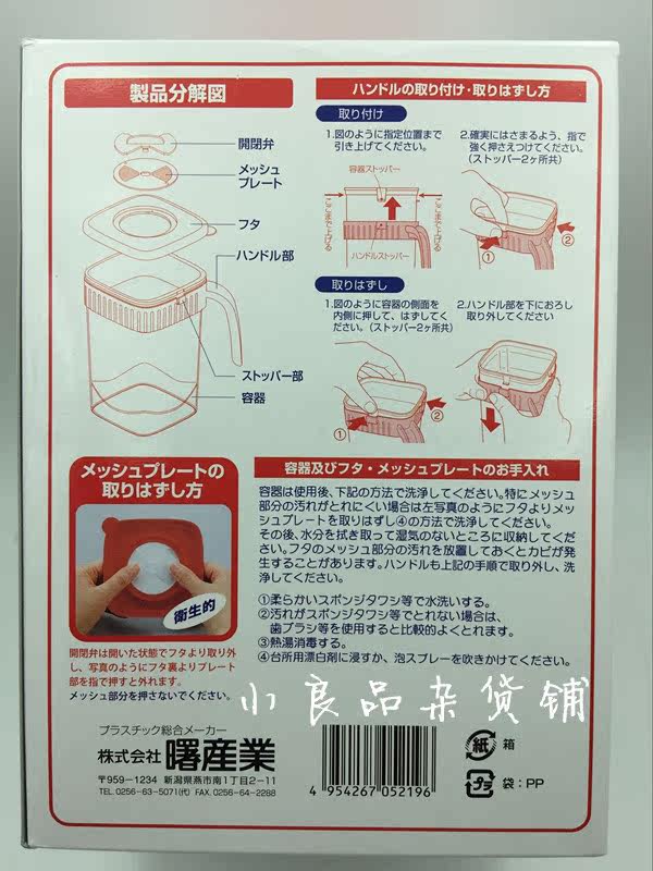Япония.Размер: 108×108×177 мм (исключая ручку).Материал контейнера и переключающего клапана представляет собой полипропилен (температура теплостойкости составляет 120 градусов, а температура охлаждения составляет 20 градусов ниже 20 градусов); Устойчивая температура составляет 20 градусов ниже 20 градусов).