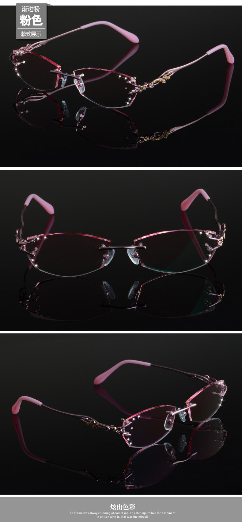 - Розовый рамка + MR7 безрамная прогрессивная розовая линза