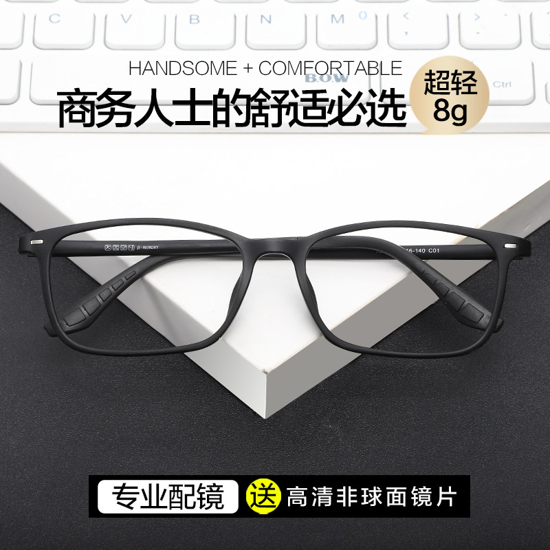 Очки с большим зрением рамки мужское зеркало зеркало Ультра -светлый TR90 Черный рамный квадрат, квадратный анти -беглый свет -разбросанный цвет рассеянный рамный глаз глаз
