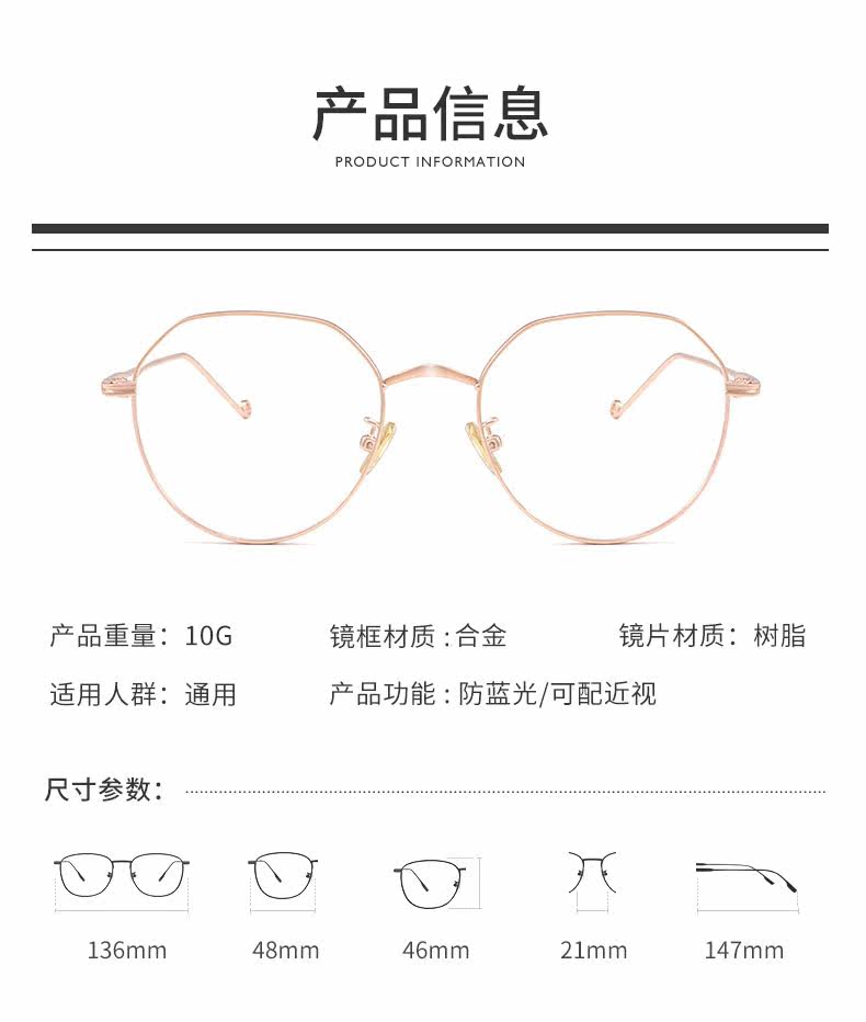 Девочки с миопией могут быть оснащены маленьким лицом и маленькой рамой с сверхлегкой ретро-глазной рамкой на больших лицах и тонком корейском стиле