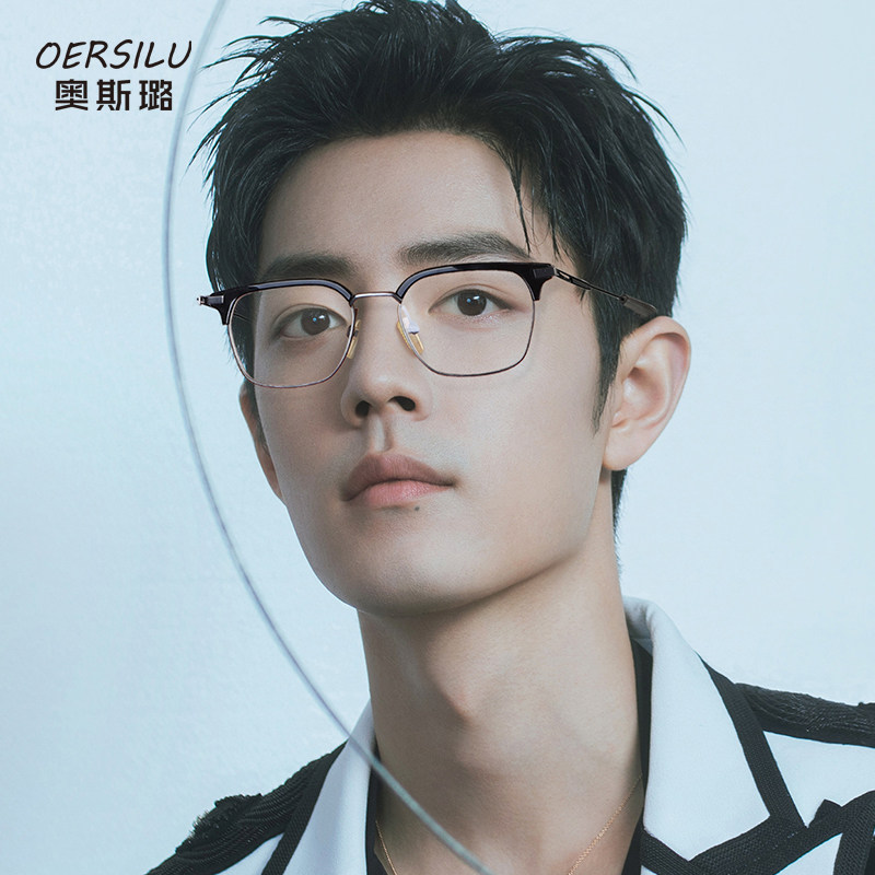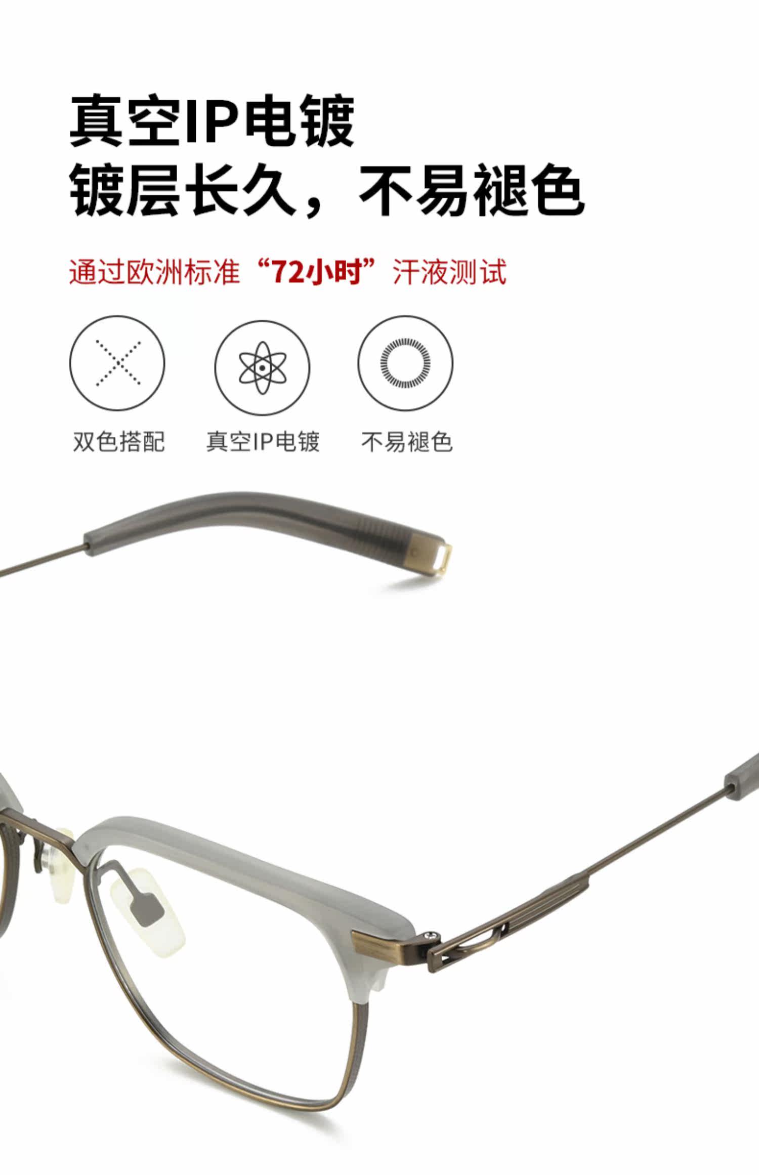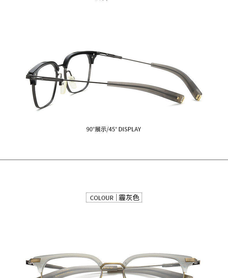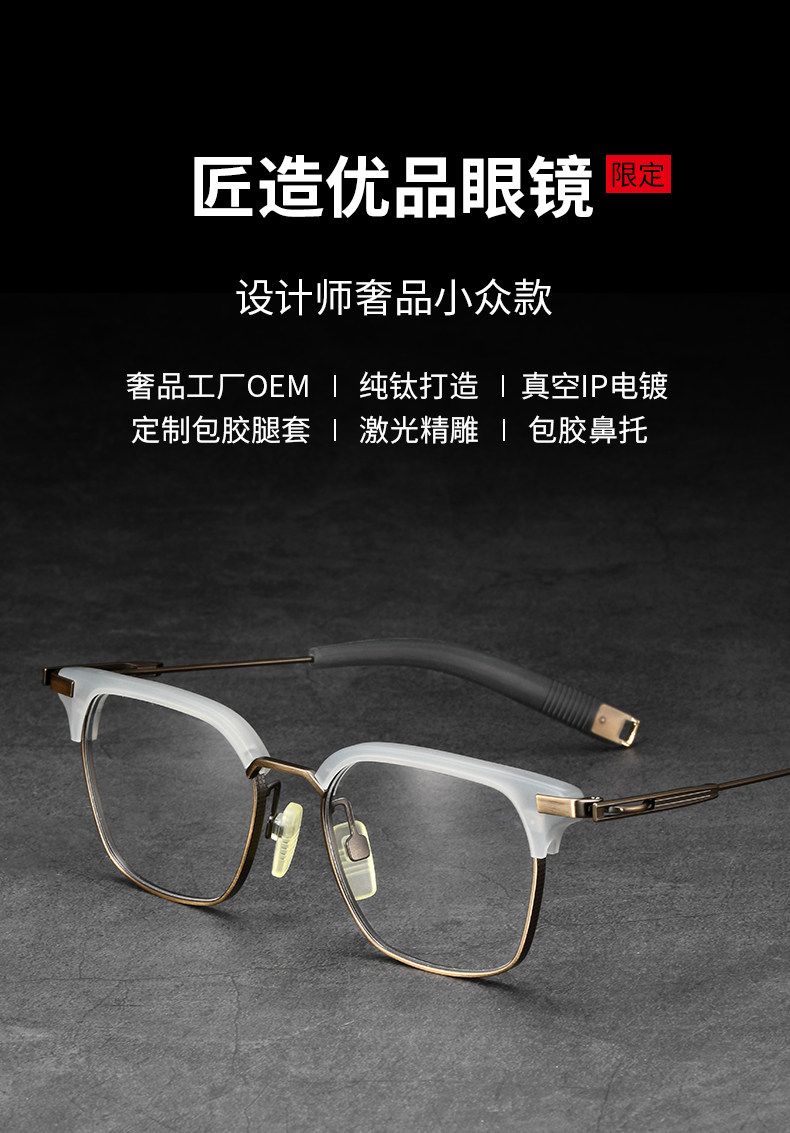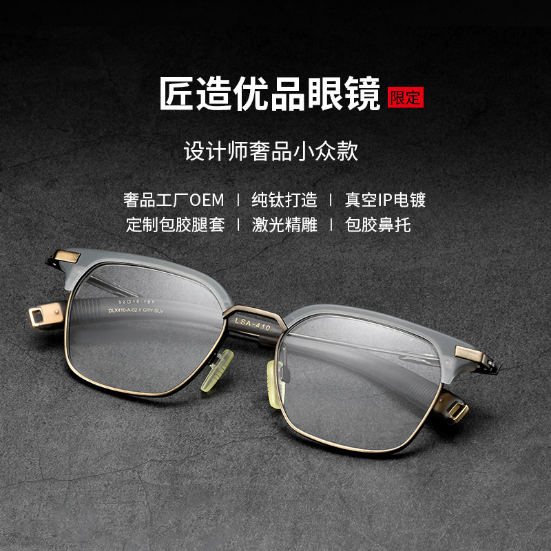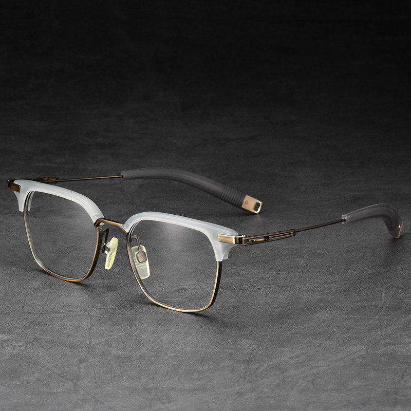 Чистый титановый ретро очки Myopia Мужчина -прилив можно сопоставить с некоторой степенью света, большого лица, цветового трансформатора, половина карниона черного золота.