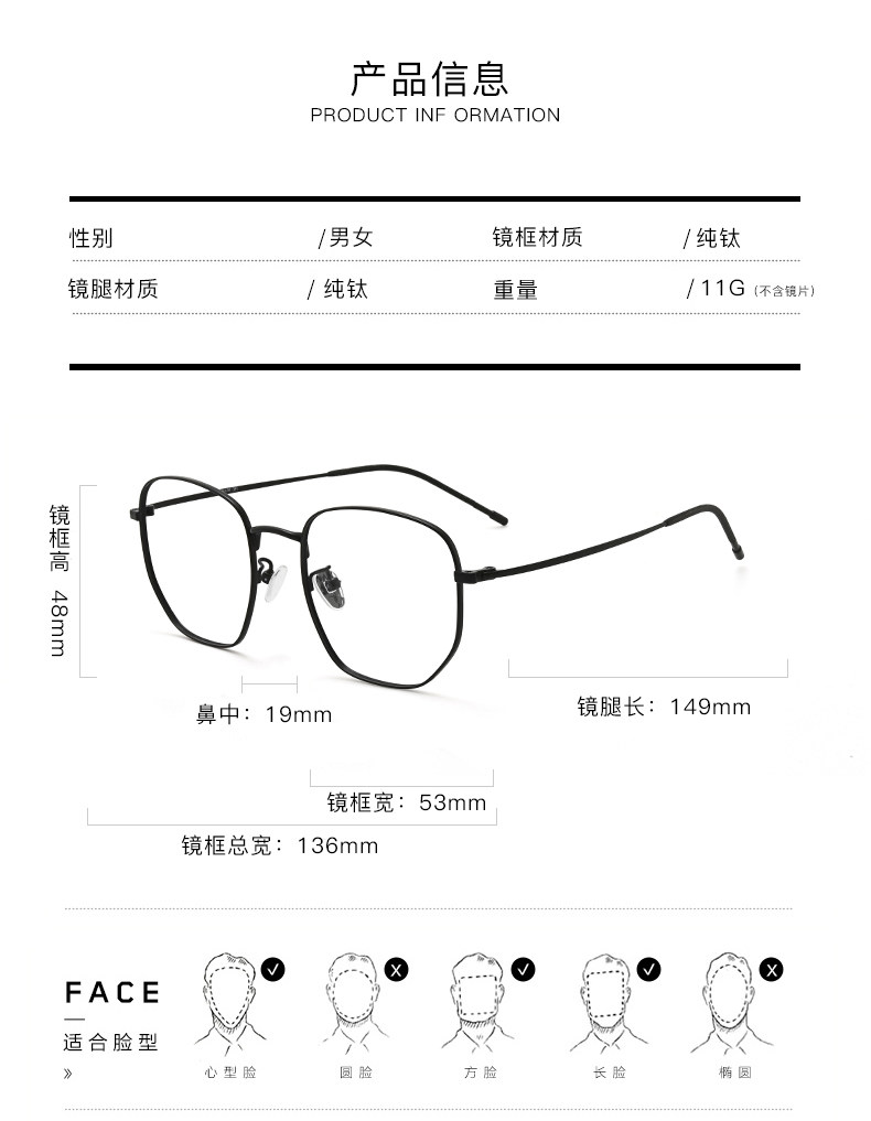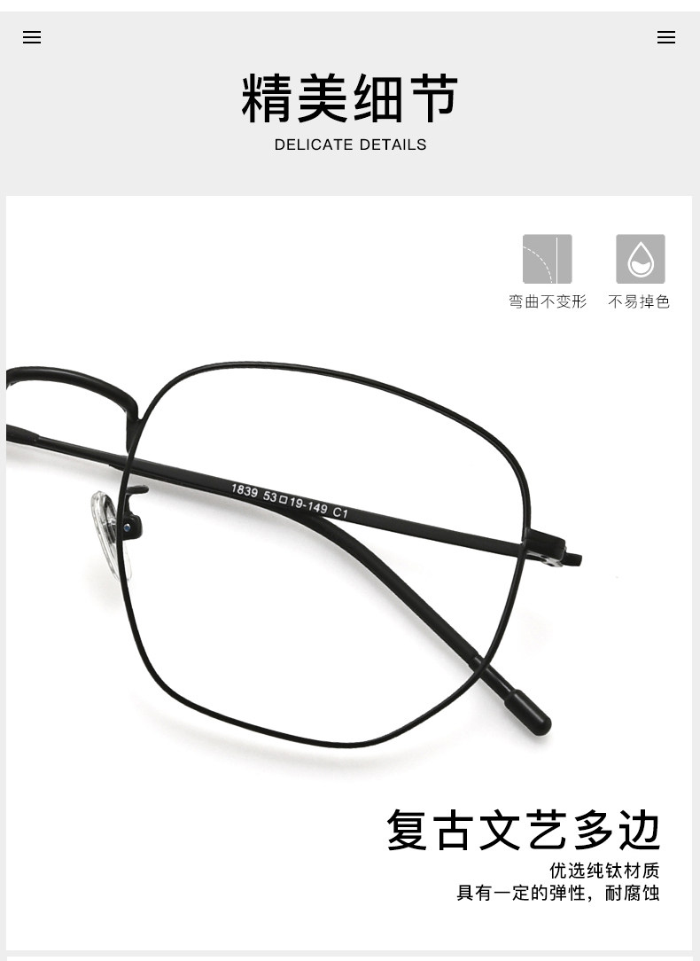 Чистый титановый миопия очки мужской прилив Ultra -светлый ретро -полигональный рам