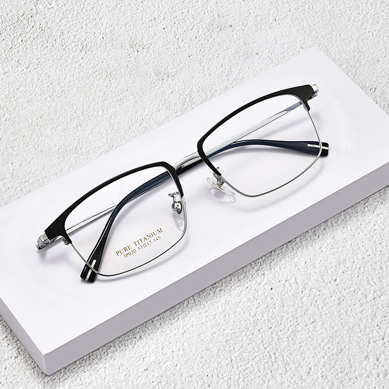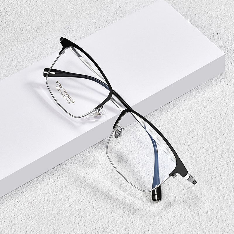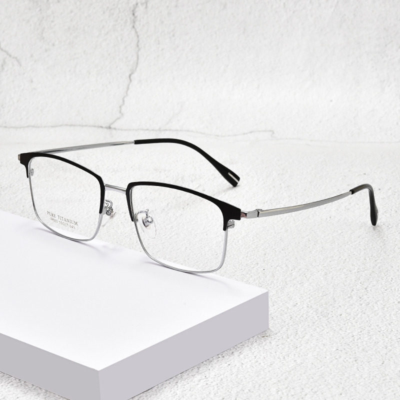 Чистый титановый миопия очки мужчины могут быть оснащены определенной степенью квадратной рамы ретро -миопия мужчины с миопией с миопией