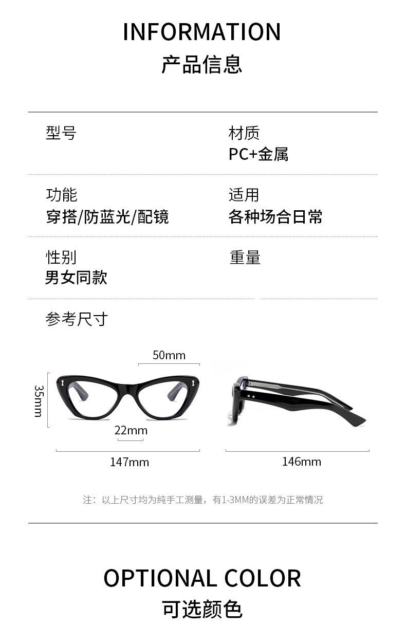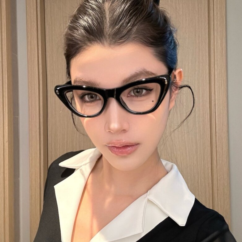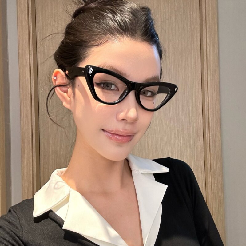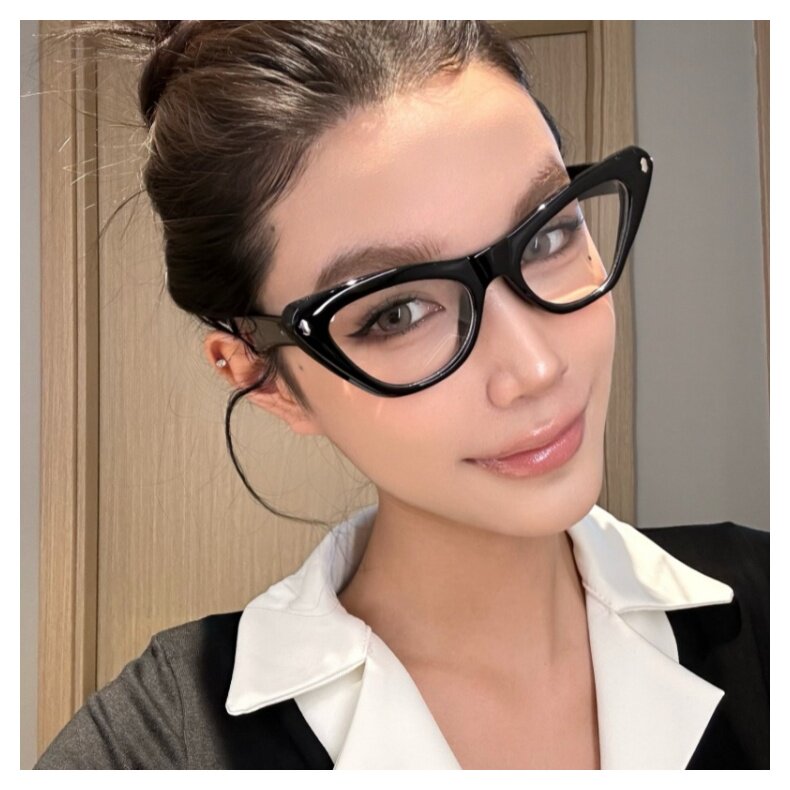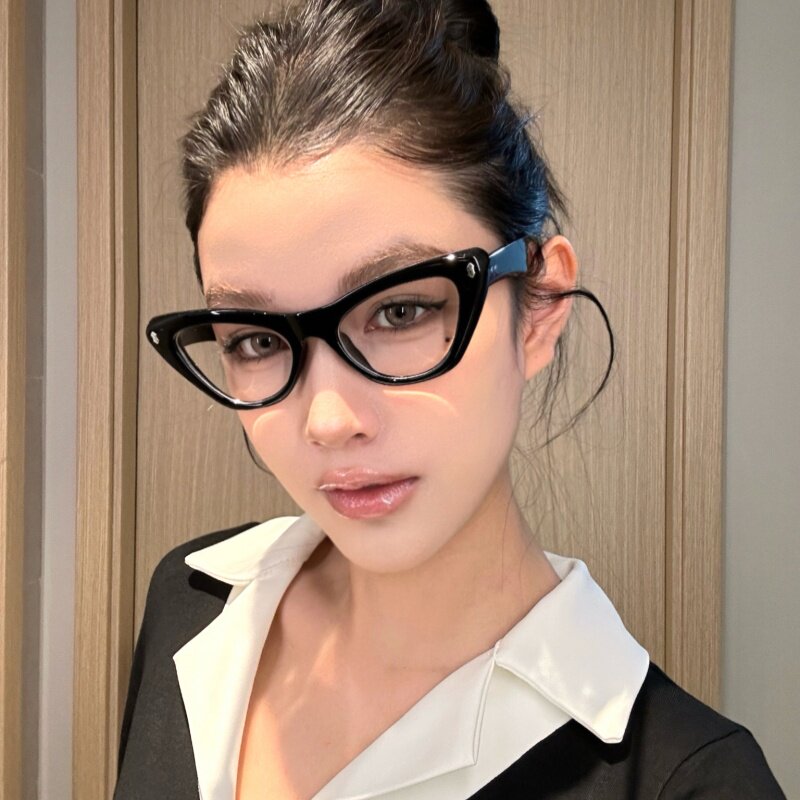 Retro American Cat Eye Black Frame Suyan Defense Blu -Ray Blues Digital Myopia очки клык лицо офисное морское демон ветер