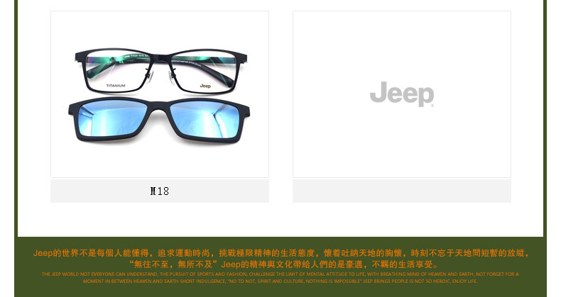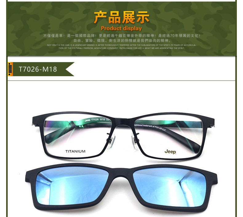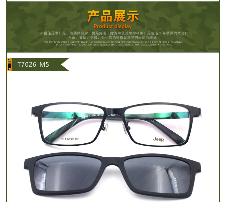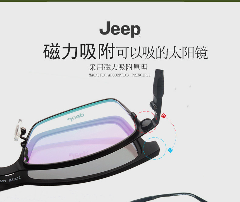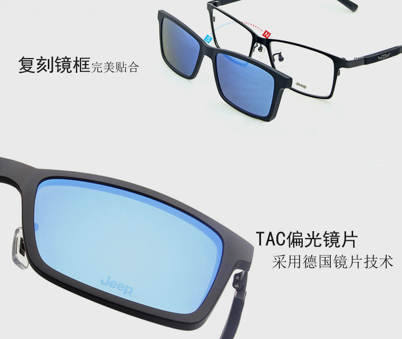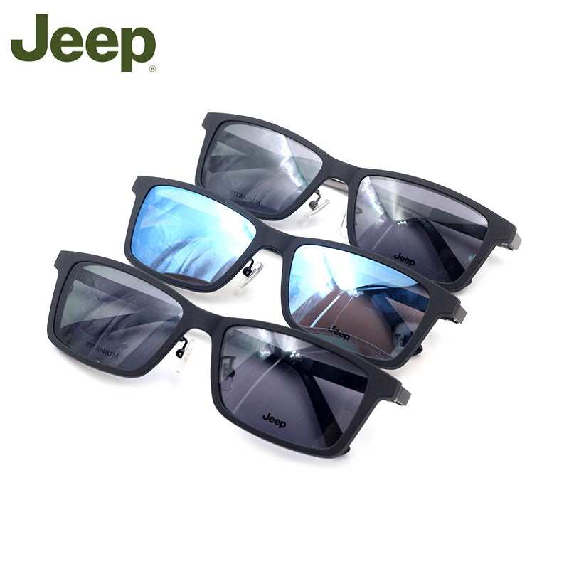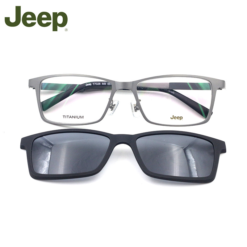 Jeep Glasses рамки мужчины полная личность личности Хан Чао Большой Лицо Чистое титановое квадратное поляризованное магнитное всасывание зеркало закрыто
