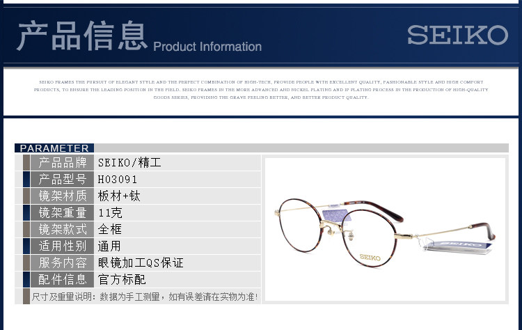 Seiko Glass Shelf Женская светлая коробка Seiko Glasses рамки мода ретро корейская версия модные женские очки H03091
