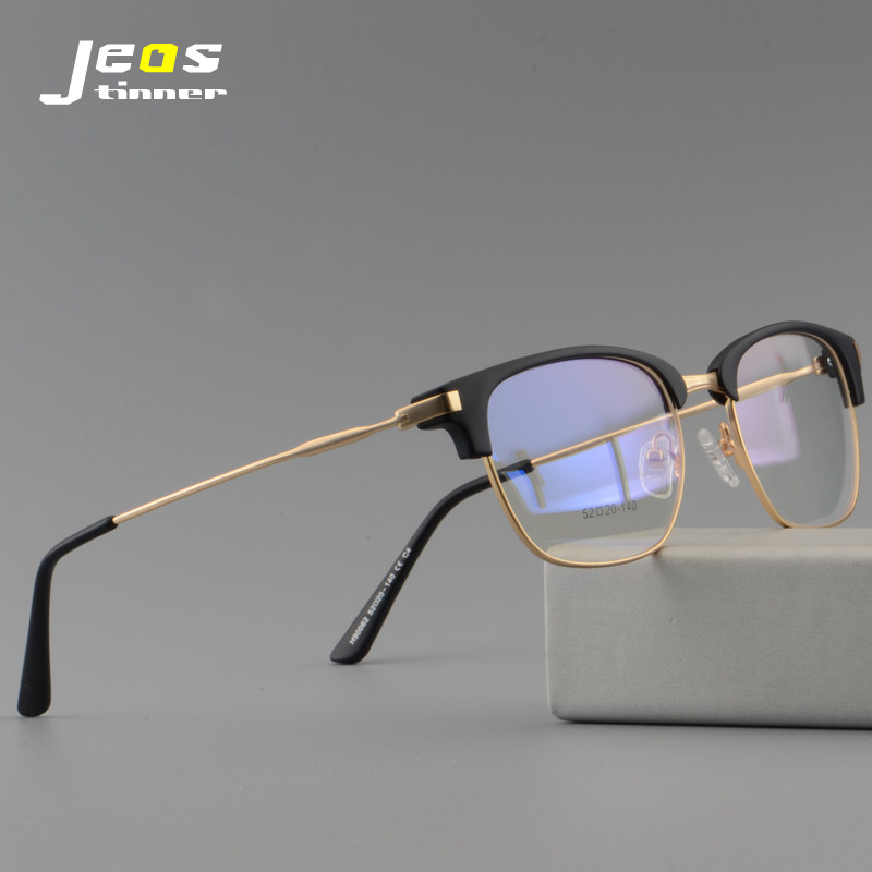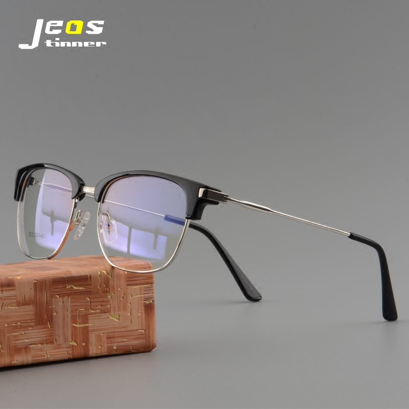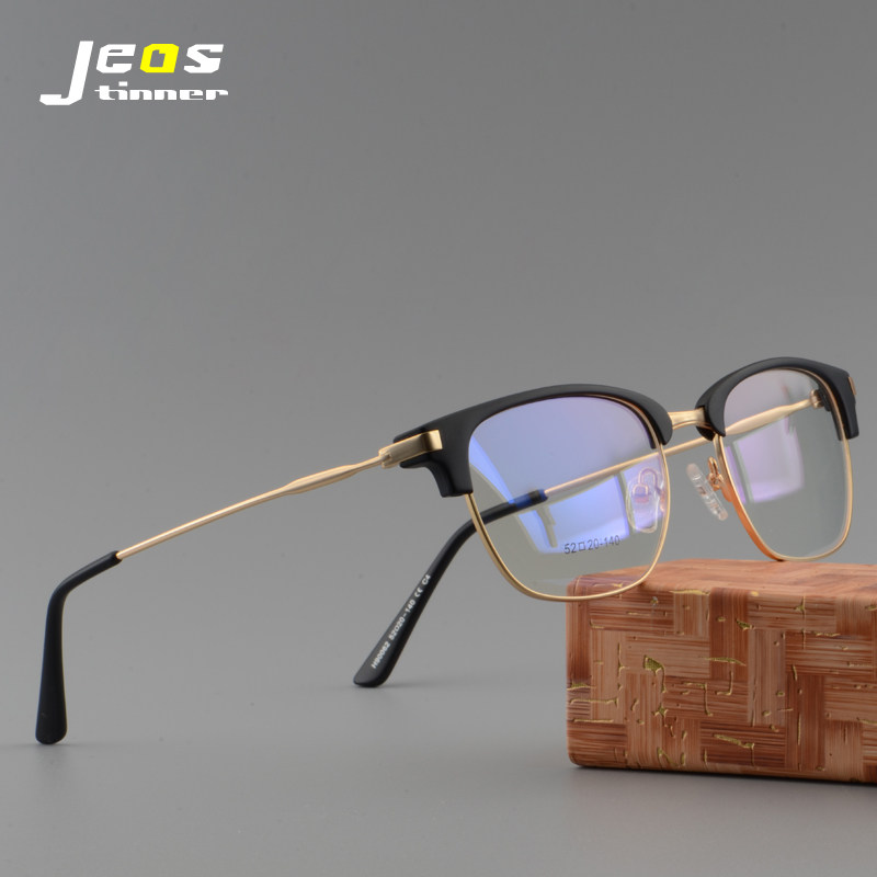 Retro Semi -Frame Myopia Glasses Мужская каркасная доска для бровей с очками с деловым фламным светом, легкомысленным зеркалом, зеркалом