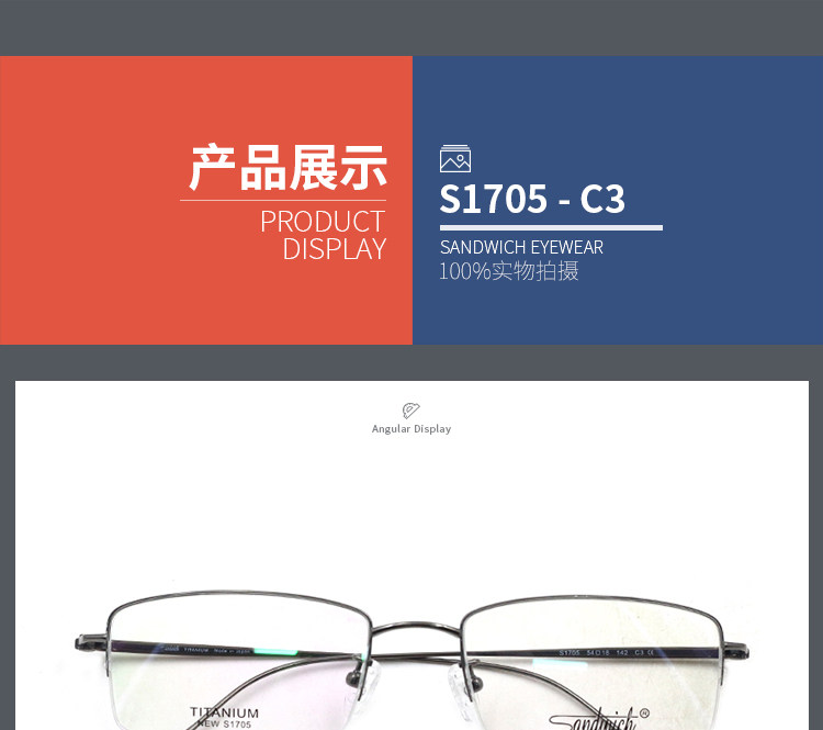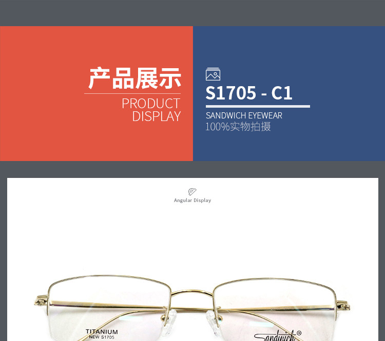 Подлинный сэндвич/Сэндрайт Светлы Мужчины и Женский Полудня чистый титановый титановый париль незнакомец Рамки S1705