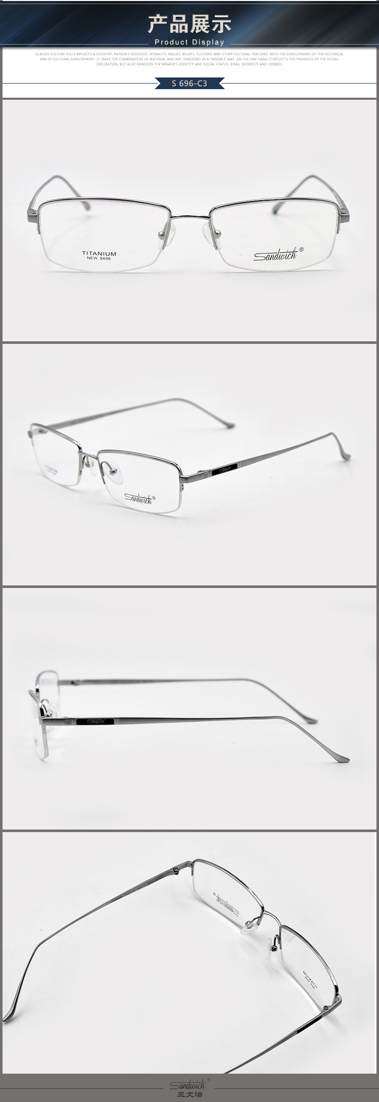 Рама сэндвич-бокалы сэндвич, импортируемая из Японии, чистый титановый полнокачественный мужские очки миопии S696