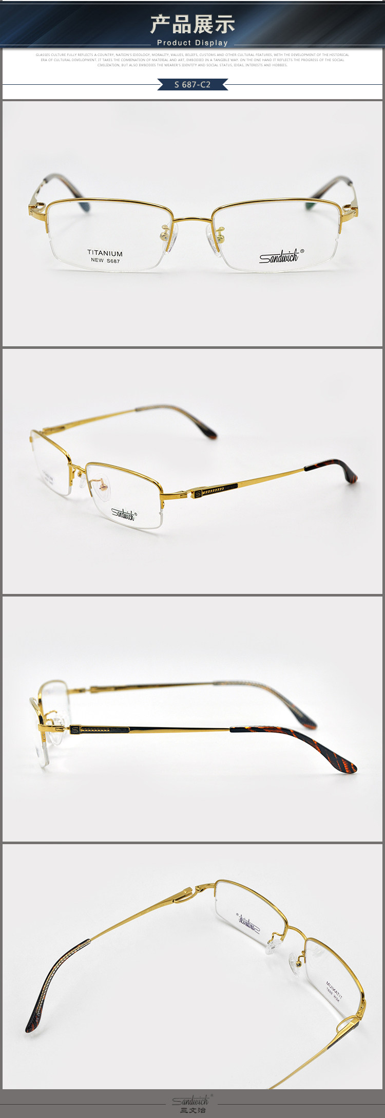 Аутентичный сэндвич -сэндвич -модный мужской бокалы для миопий