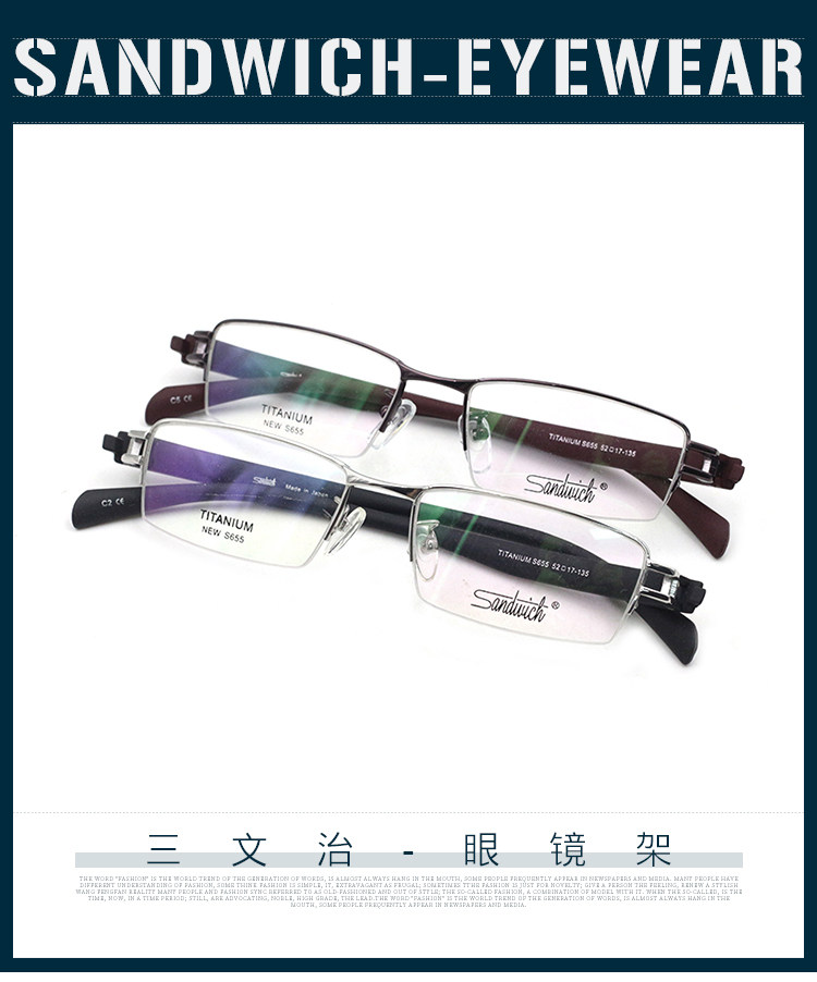 Сэндвич -бутерброды мужская мода Myopia Glasses Stand Pure Titanium Light Half -Frame Business Frame с зеркалом S655