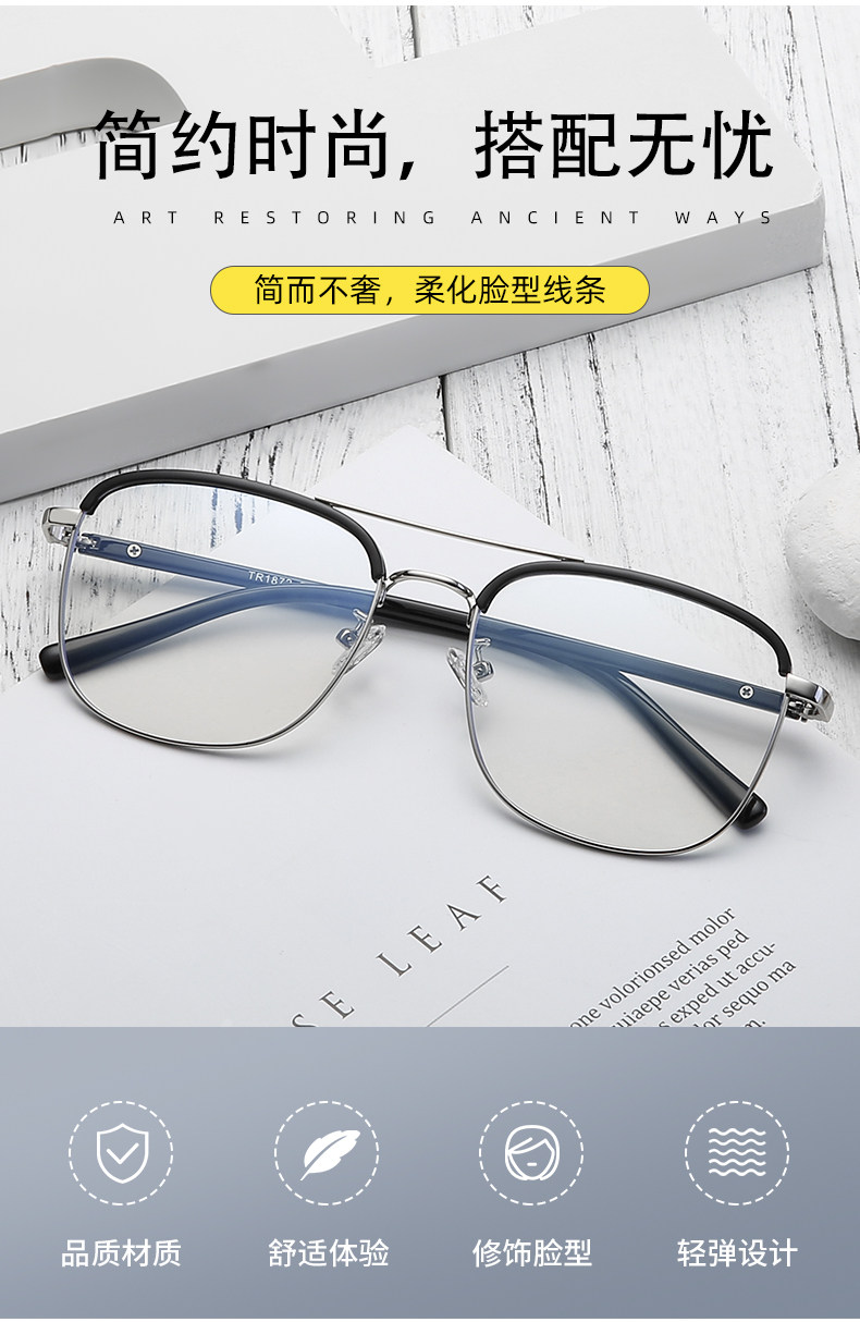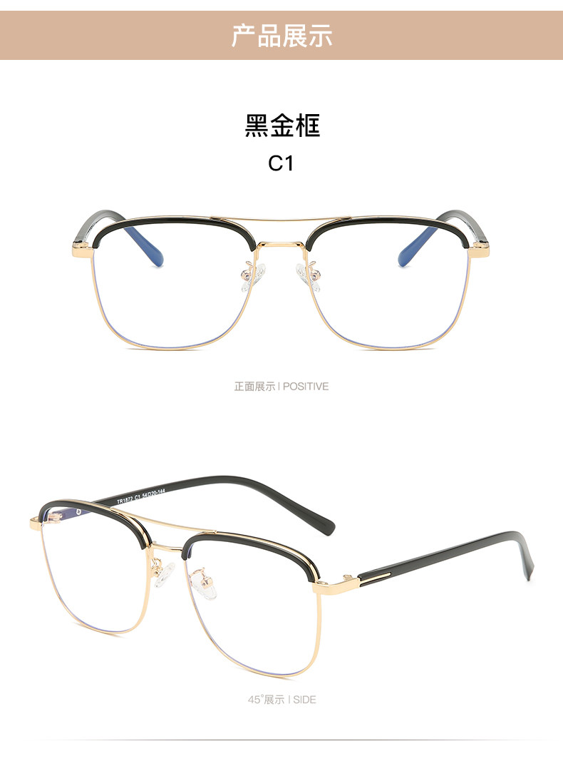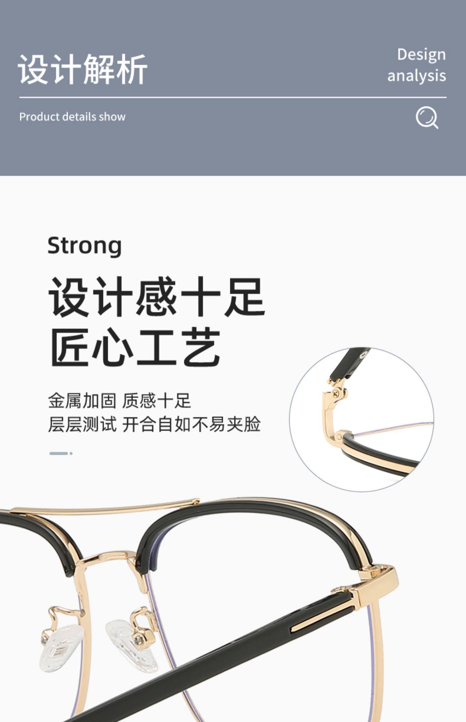 Модная прилив мужской оборона Blu -ray Retro Double -Beam Black Goldes Strases Rack Metal TR90 со степенью скритической миопии самки