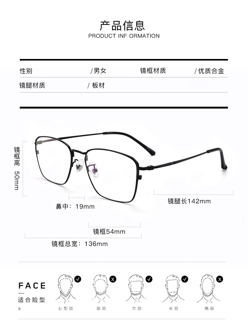 Super Light -Vision Glasses Мужские коробки литературные и повседневные очки рамки Большое лицо может быть оснащено линзами с астигматизмом.