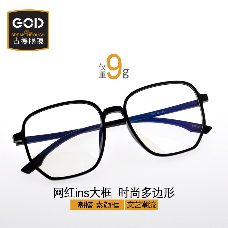 Ультра -светлая рама Polygon TR90 Glasses SCARES FRACE Женское большое лицо тонкое, а ретро -круглое лицо могут быть оборудованы синим светом