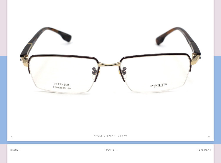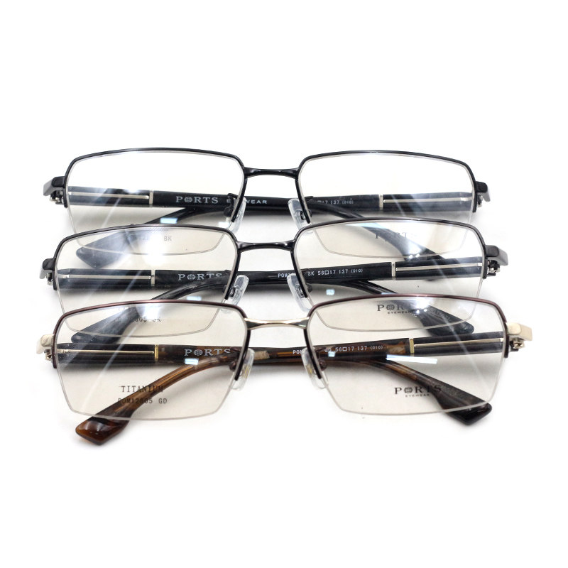 Порты Myopia Glass Shelf Baozi Men's Pure Titanium Half -Frame Glasses Frame Business с зеркальной рамой pom12805