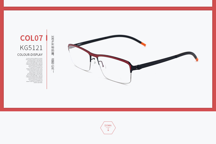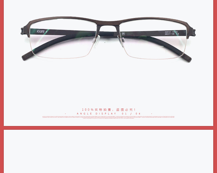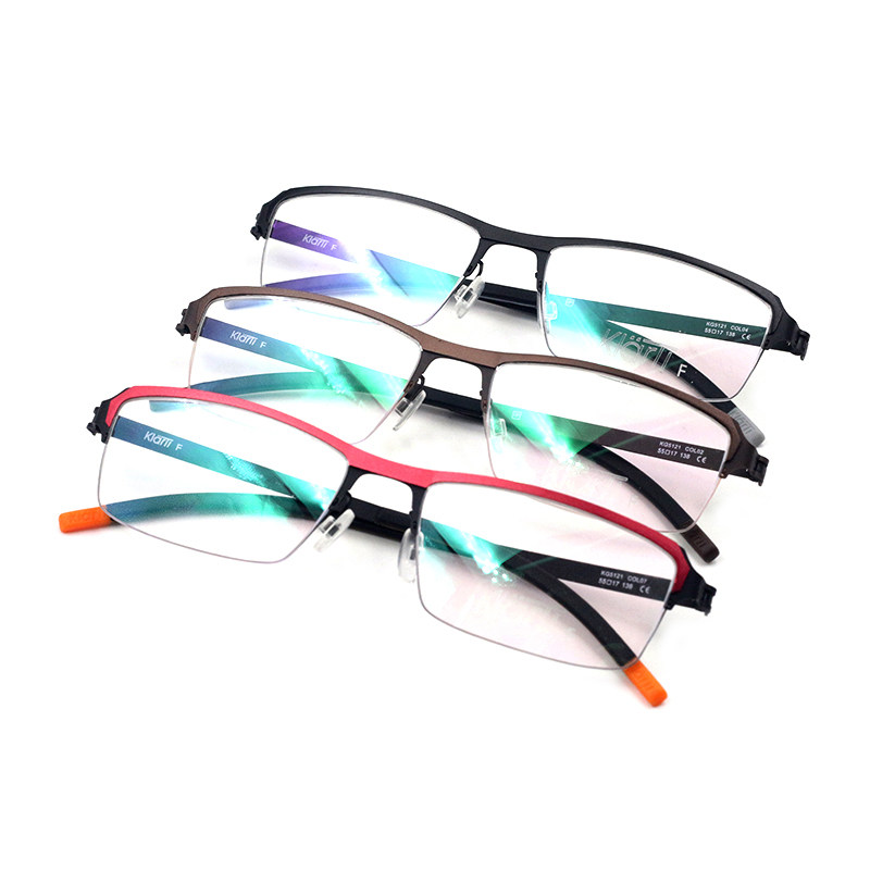KLARTI Каратные титановые очки рама для мужчин и женщин деловых очков для бизнес-света для полу-образной рамки миопии для KG5121