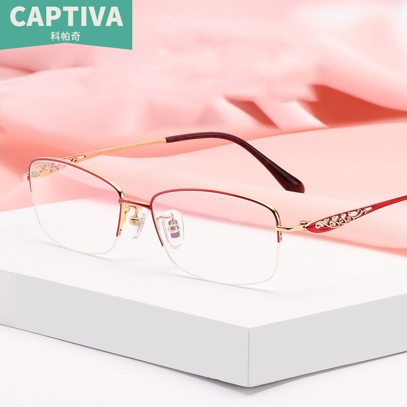Атмосфера моды Элегантное чистого титана наполовину рамки женские очки миопий