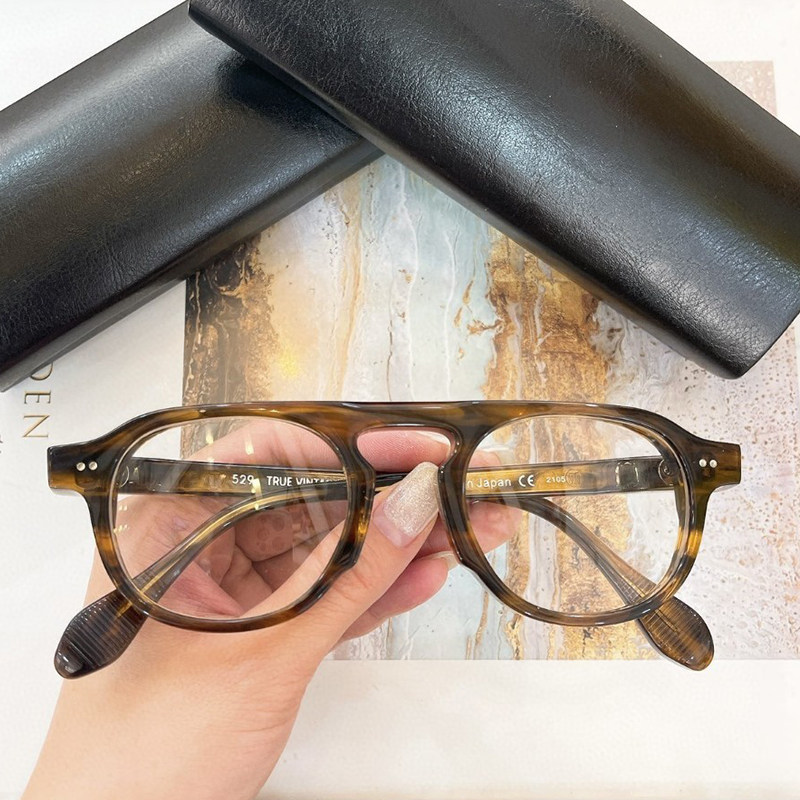 Японские ретро -жирные круговые круговые плоские стеклянные очки.