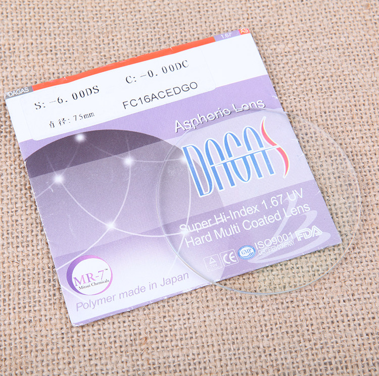 1,67 1.74 Асферическая миопия линза корейская смоляная смоля-защищенная ультратонкая ультратонкая линза Затвердевшее клык Ченг