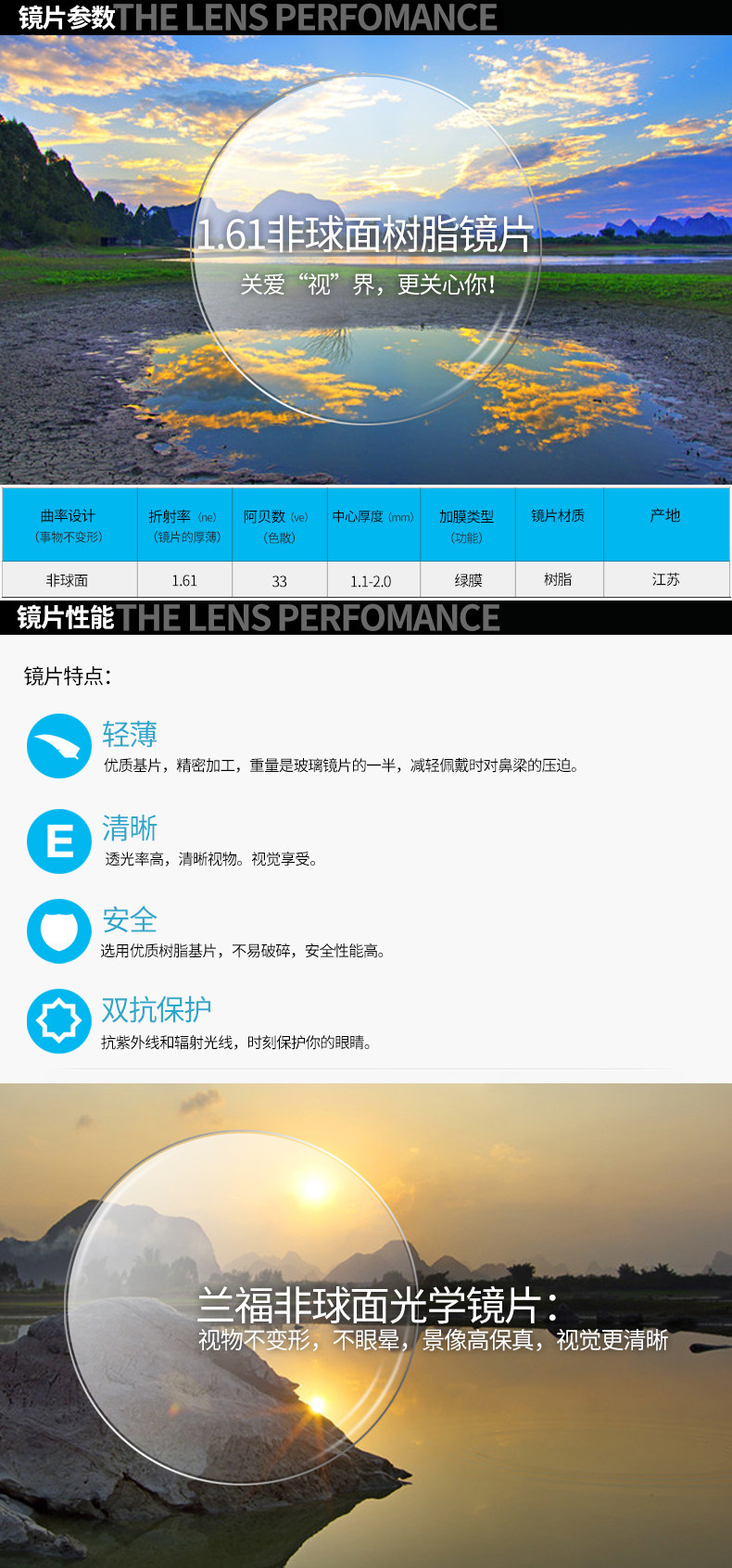 Оптические линзы миопии 1,74 Непреодолимые 1,56 смоля Ультра -Тин 1,67 Астигматизм