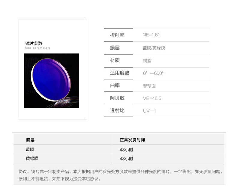 Золотая синяя пленка Xueshi/желтая пленка не -кферическая 1,61 против легкого анти -радиационного анти -uv400 света и света с высоким определением две пьесы