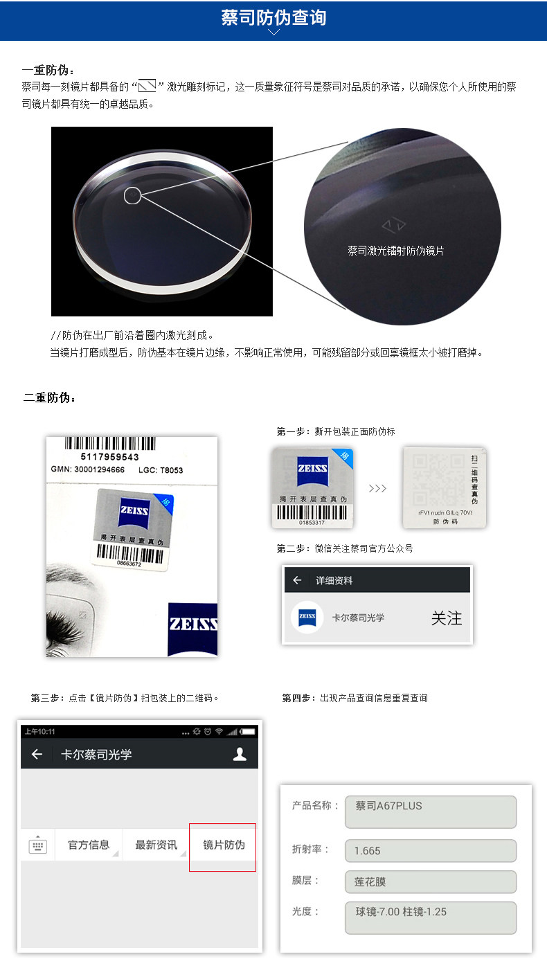 Zeiss Zeiss Lins Lens Ultra -Clear Lense A Series 1.67 Lons Lens Lens Lins на не -кферической миопийской линзе
