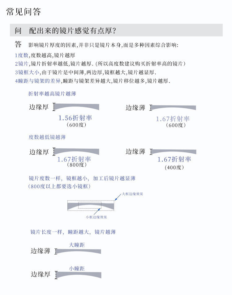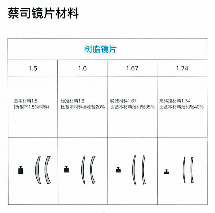 | Показатель преломления линзы: | 1,56 (тонкий), 1,60 (тонкий), 1,67 (ультра -тщательный), 1,74 (ультра -тщательный), 1.50 (обычный) |