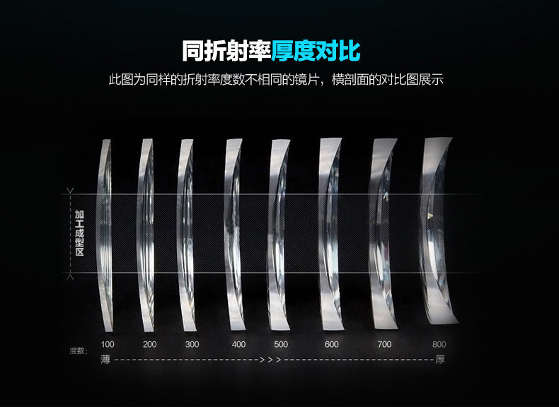 | Показатель преломления линзы: | 1,56 (тонкий), 1,61 (тонкий), 1,67 (ультра -тщательный), 1,70 (ультра -тщательный), 1,74 (ультра -тщательный) |