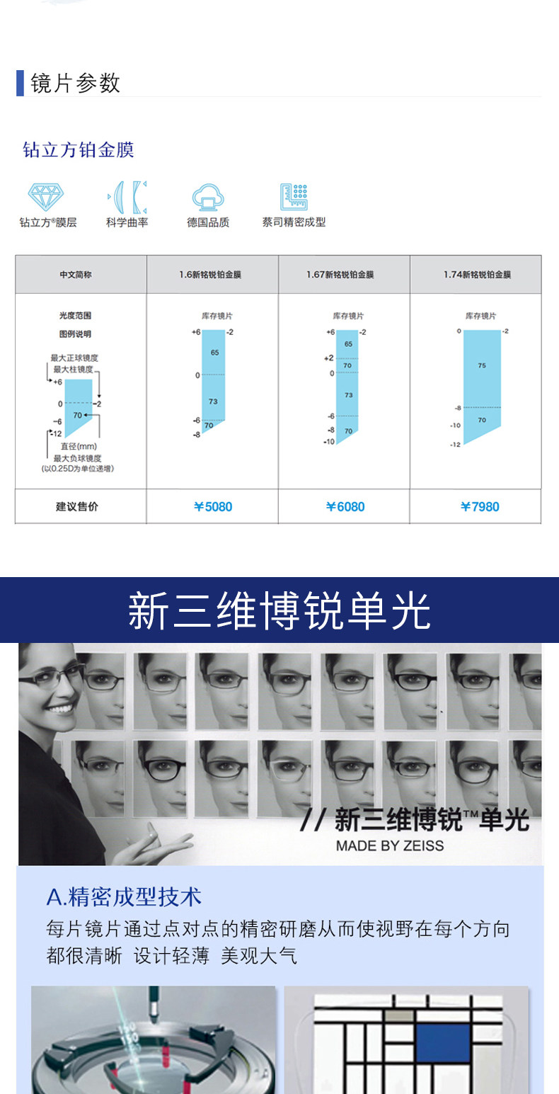 Zeiss German Zeiss Glasses Graphic Photo Официальный флагманский магазин Новый трехмерный Borui Ultra -Thin Resin 1,74 Anti -Blue Light